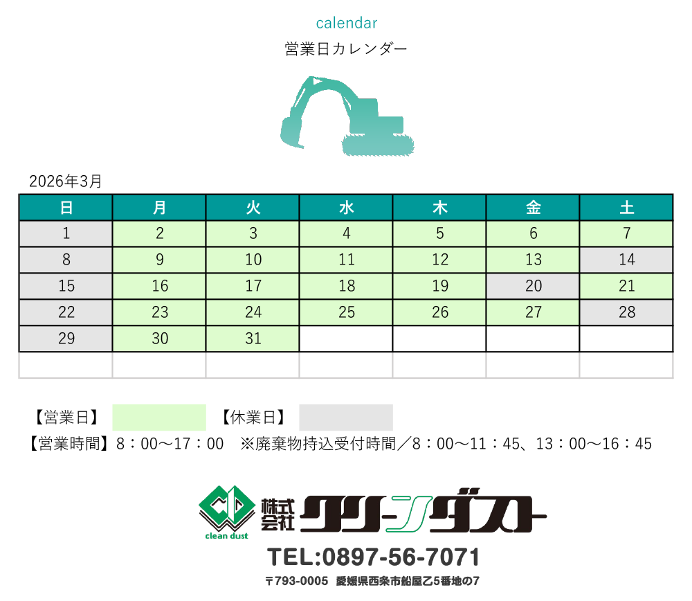 2026年2月・3月の営業日をお知らせいたします。